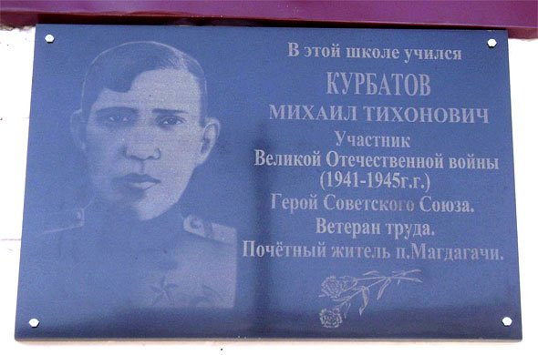 Михаил Тихонович Курбатов родился 15 января 1924 года в Магдагачах в крестьянской семье. В ряды Рабоче-крестьянской Красной Армии был призван 9 января 1942 года. Амурчанин погиб в боях за город Гродно в 1944 году. Михаил Курбатов является обладателем медали «Золотая Звезда», ордена Ленина и медали «За отвагу».