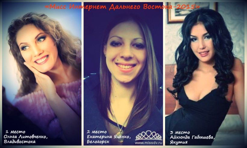 Сегодня, 12 октября, стали известны итоги финального голосования на конкурсе «Мисс Интернет Дальнего Востока-2015». За престижное звание и корону в финале боролись три девушки — Ольга Литовченко из Владивостока, Екатерина Яценко из Белогорска и Айкюнда Габышева из Якутии.