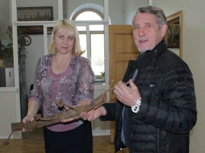 Уникальные экспонаты подарил городу архитектор Валерий Сикерин. Он передал в музей кирпич и крепежную пластину с болтами от шатровой конструкции Триумфальной арки, а также фрагменты гранита от цокольной части, кирпич, детали стропильной конструкции крыши Шадринского собора.