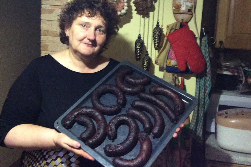 – Кровяную колбасу я делаю не первый год, поэтому в моем рецепте нет конкретных пропорций, все делаю на глаз и на вкус. Вначале варю гречневую кашу. Для колбасы подойдет кровь свиньи. В нее я добавляю сырые яйца из расчета на 1 литр крови примерно 2-3 яйца. В содержимое мелко режу чеснок, предварительно мелко нарезанные и обжаренные шкварки. Можно добавить мелко нарезанное сердце. Я его предварительно отвариваю. Соль и перец добавляю по вкусу. Позже добавляю молоко и кашу. Полученную массу хорошо размешиваю, начиняю ей кишки и завязываю.