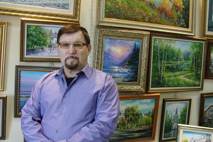Его пейзажами можно смело иллюстрировать учебник географии Амурской области. Как-то — еще когда студентом худграфа был — с приятелем своим отправились на этюды далеко в тайгу. И вот стоят на полянке, утреннее солнечное настроение на холст переносят — сосредоточенные, увлеченные… Настолько увлеченные, что и не заметили, как на эту самую полянку и волк вышел. Да не просто волк, а волчара огромный. Оцепенели парни, сами понимаете — жуть… Но волк оказался любителем искусств: посмотрел — не напутали ль пацаны чего, не наврали ль, увидел, что все нарисованное — нормалек, кивнул легонько и ушел по своим делам…