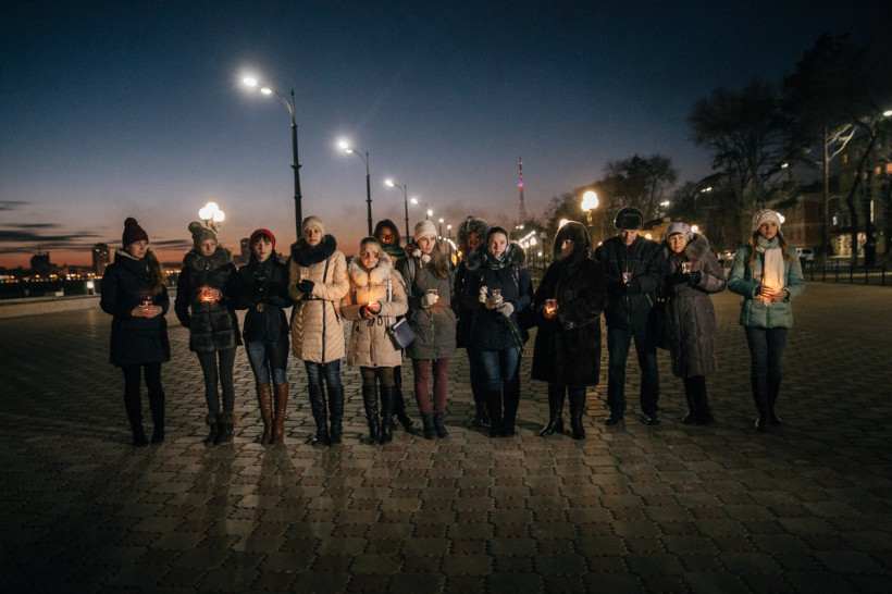 Сегодня вечером десятки благовещенцев собрались на набережной реки Амур возле ротонды. Здесь по инициативе Центра развития молодежных и общественных инициатив «Выбор» и Городского дома культуры прошла акция памяти жертв серии террористических актов в Париже и жертв крушения российского самолета в Египте. Собравшиеся несли к месту памяти цветы, а также зажгли десятки свечей. Также здесь почтили жертв терактов минутой молчания. Самолет с российскими туристами разбился 31 октября, и стихийные акции памяти прокатились по разным уголкам Приамурья после трагедии. Недавно стало официально известно о том, что причиной крушения стал теракт — в самолете была взорвана бомба.