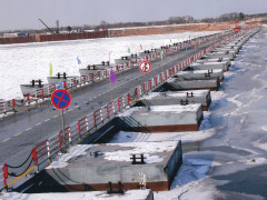 В Приамурье на реке Амур специалисты смонтировали два понтонных моста, соединяющих российский Благовещенск и китайский Хэйхэ. По одной наплавной конструкции пойдут пассажирские автобусы, другая возьмет на себя грузовой транспорт. Движение по обоим мостам планируют начать в первых числах декабря.