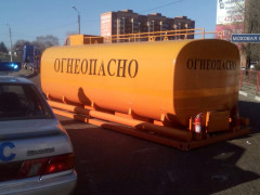 Сегодня, 26 ноября, в Благовещенске на кольцевой развязке на Театральной трал потерял цистерну с надписью «Огнеопасно». Емкость вместимостью 10 тонн не была закреплена и упала с перевозившего ее автомобиля, когда он начал двигаться по кольцу.