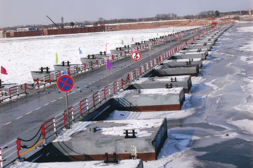 В Приамурье на реке Амур специалисты смонтировали два понтонных моста, соединяющих российский Благовещенск и китайский Хэйхэ. По одной наплавной конструкции пойдут пассажирские автобусы, другая возьмет на себя грузовой транспорт. Движение по обоим мостам планируют начать в первых числах декабря.