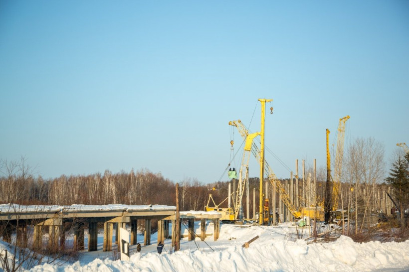 В Приамурье строители укладывают основание нового моста через Уркан. Фоторепортаж