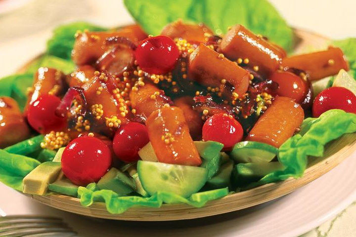 Сосиски на шпажках в медово-горчичном соусе, в салате и мини-пицце: рецепты