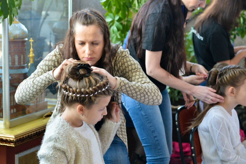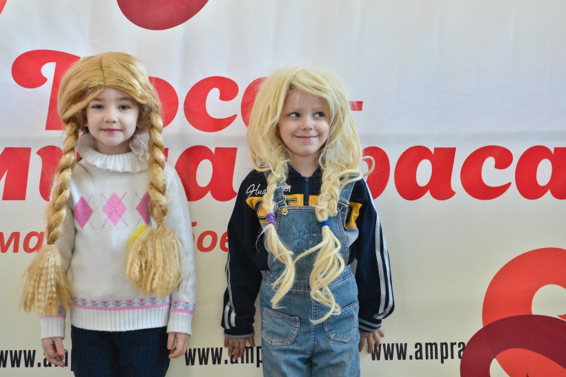 На конкурсе «Коса — мамина краса» устроили фотосессию в париках