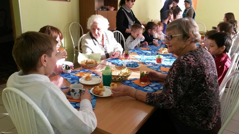 Дети спели частушки и показали сценки из жизни. Встреча напоминала общение обычных бабушек и внуков в простых семьях. За чаем в столовой дети рассказали, как складывается их жизнь, на какие экскурсии они ездят и куда еще бы хотели отправиться. Бабушки предложили вместе отметить масленицу и держать связь и дальше.