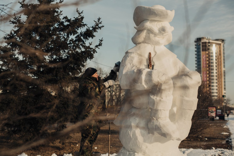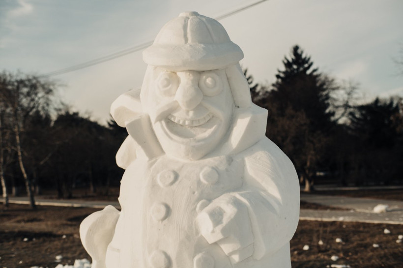 Четыре снежных скульптуры уже поселились в снежном городке на центральной площади Благовещенска — Барон Мюнхгаузен на ядре, пес с волком из мультика «Жил-был пес», бандиты из «Приключений капитана Врунгеля» и герои мультсериала «Следствие ведут колобки».