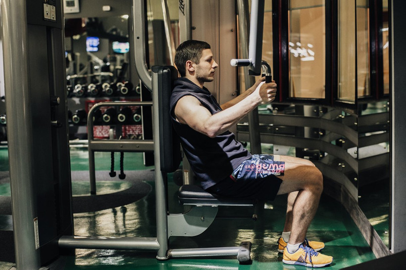 — При большом весе некоторые в конце упражнения просто бросают тренажер, — озвучил тренер. — От этого не только можно испортить оборудование, но и получить серьезные травмы — разорвать грудные мышцы или связки на руках. Поэтому совет — не нужно сразу устанавливать максимальный вес, для начала научитесь выполнять упражнение правильно.