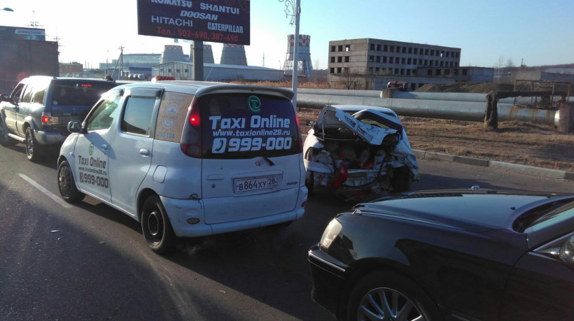 Четыре автомобиля – микроавтобус, Nissan Cube, Toyota Corolla и Toyota Vitz – ехали в одном направлении по Студенческой. В сторону ТЭЦ навстречу им двигался грузовик Hyundai. Микроавтобус не выдержал дистанцию и ударил в зад Corolla, та вылетела на встречку и попала под грузовик, следом микроавтобус врезался в Nissan.
