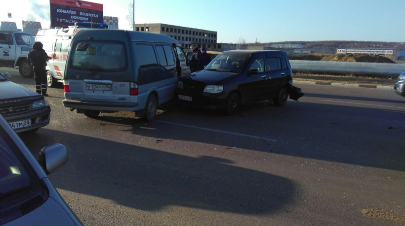 В микрорайоне Благовещенска столкнулись пять автомобилей