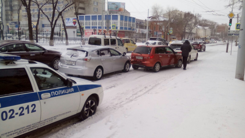 В центре Благовещенска столкнулись три иномарки