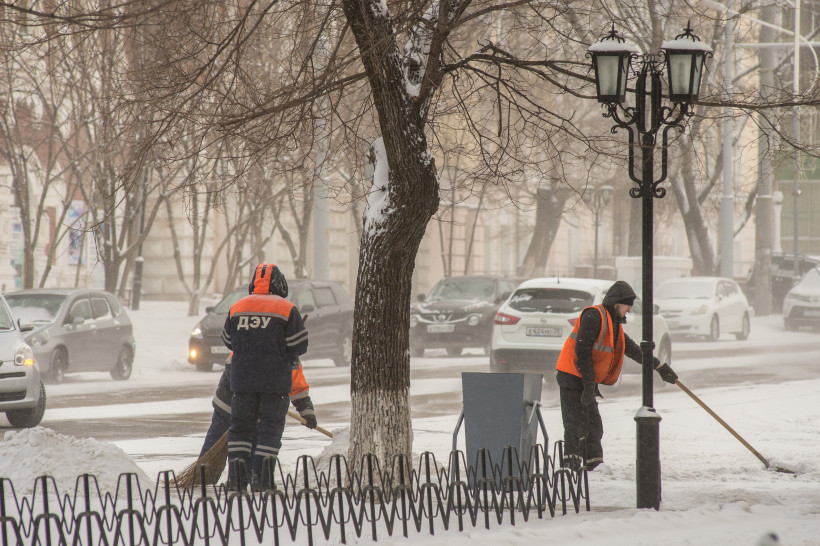 Половина месячной нормы снега выпала за ночь в Благовещенске