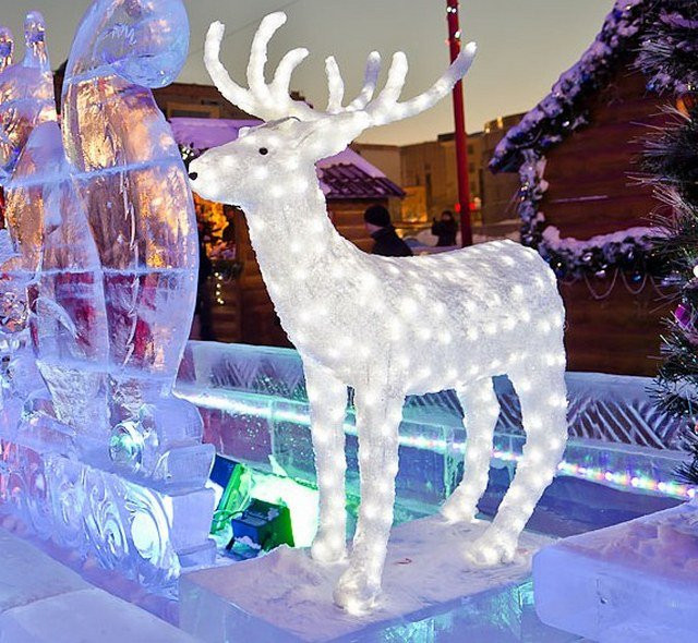 Сегодня, 24 декабря, в снежном городке Белогорска появилась необычная фотозона — на деревянном основании установили фигуры четырех оленей и сани. С первых минут декоративные олени привлекли горожан и они начали с ними фотографироваться. Фигуры находятся прямо в центре площади рядом с главной городской елью. Около нее также стоит декоративная обезьяна — символ 2016 года.