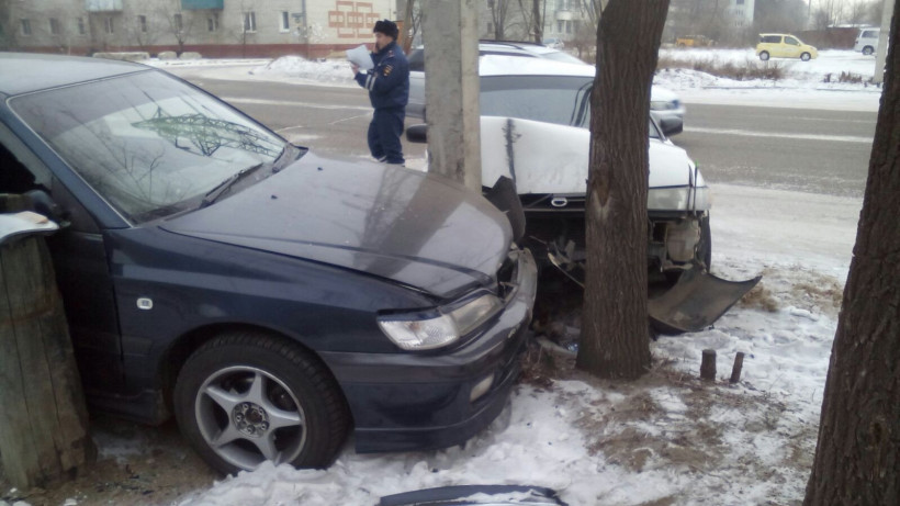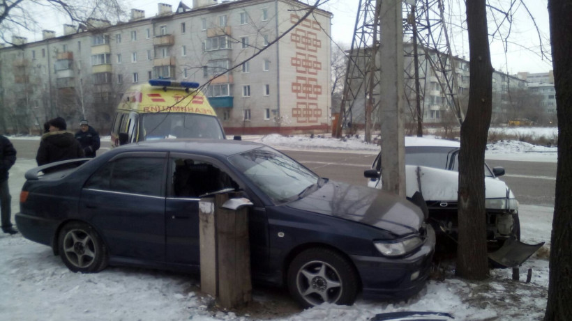 Сегодня, 5 января, в районе дома 208/2 на улице 50-летия Октября в столице Приамурья столкнулись две иномарки. От удара машины развернуло, и они врезались в один столб.
