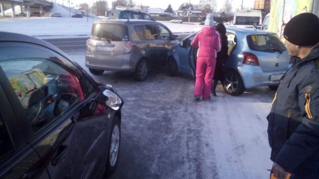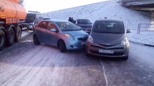 Сегодня, 6 января, при въезде на кольцевую развязку в районе улицы Театральной в Благовещенске произошел затор из-за ДТП, произошедшего по вине начинающего водителя. В аварии пострадали три автомобиля. Машины Toyota Ractis и Nissan Tiida заезжали на Театральное кольцо со стороны поста ГИБДД. Оба ехали по левой полосе. В это время по правой полосе двигалась Toyota Wish с девушкой за рулем. Она не рассчитала безопасную скорость движения, машину занесло и отбросило на Ractis и Tiida.