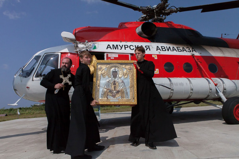 — Если говорить из последних общественных чудес, то амурчане наблюдали его в августе 2013 года, когда было крупнейшее наводнение, — продолжает епископ Лукиан. — Албазинскую икону погрузили в вертолет, чтобы совершить с ней небесный крестный ход. На остановках в Константиновке, Пояркове и Архаре перед святыней служили молебны. Это было 14 августа. Через сутки подъем воды в Амуре остановился, а 19 августа она начала спадать.