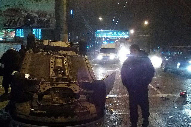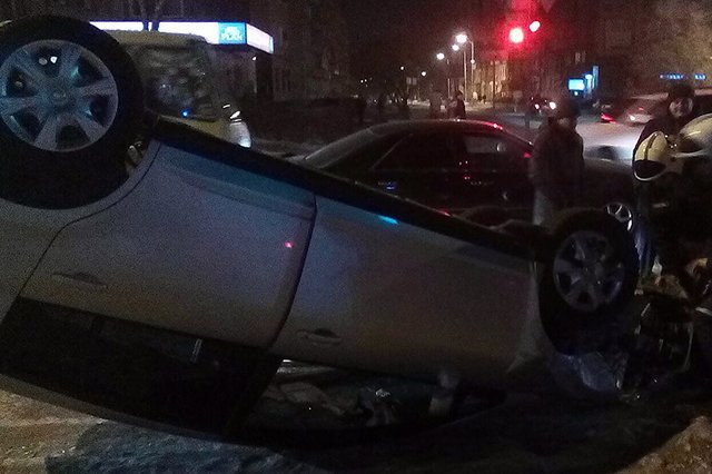 Вечером в среду, 13 января, в столице Приамурья произошло серьезное ДТП — одна иномарка врезалась во вторую на перекрестке и от сильного удара перевернулась.
