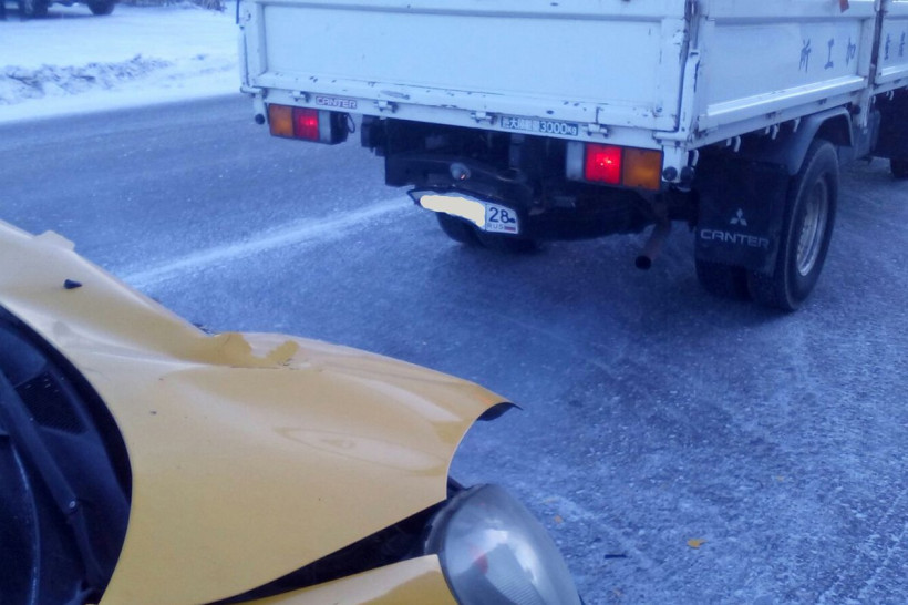 Сегодня, 15 января, в микрорайоне столицы Приамурья произошла авария с машиной такси. Водитель авто с шашечками врезался в зад грузовику.