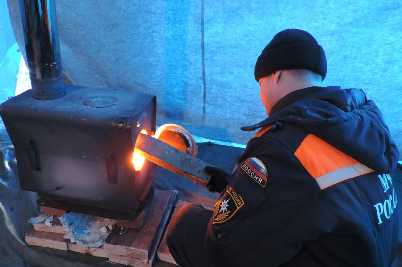 — Эта палатка вмещает до 30 человек. Устанавливается и насыщается всем необходимым в течение часа, — проводит экскурс старший инструктор специальной пожарно-спасательной части Александр Гусаков. — В настоящее время здесь установлены раскладушки, чтобы люди могли отдохнуть, согреться, получить первую медицинскую помощь. Кроме того, есть источник электропитания, позволяющий заряжать сотовые телефоны для связи с родными.