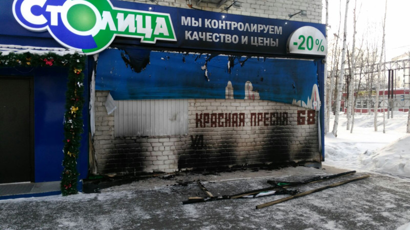В Тынде сожгли баннеры на фасаде алкомаркета