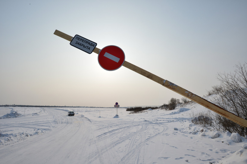 К поселку Береговой пришлось открыть объездную ледовую переправу