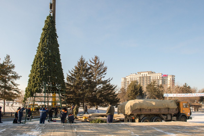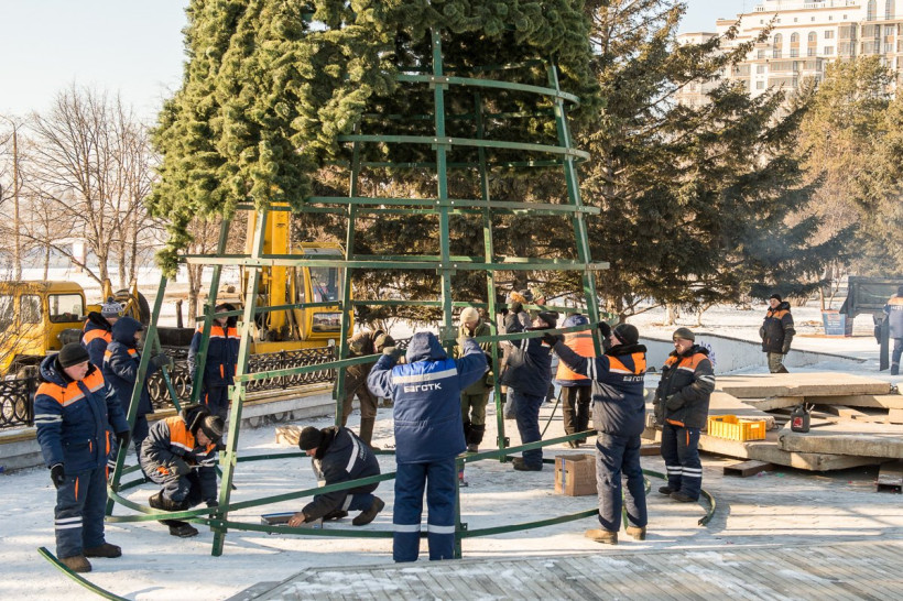 В амурской столице убирают главную новогоднюю красавицу области. Сегодня, 1 февраля, специалисты приступили к демонтажу искусственной ели.