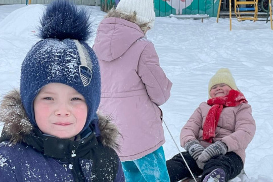 Горка, морозный день и улыбки поднимают настроение на все сто! Автор: Ирина
