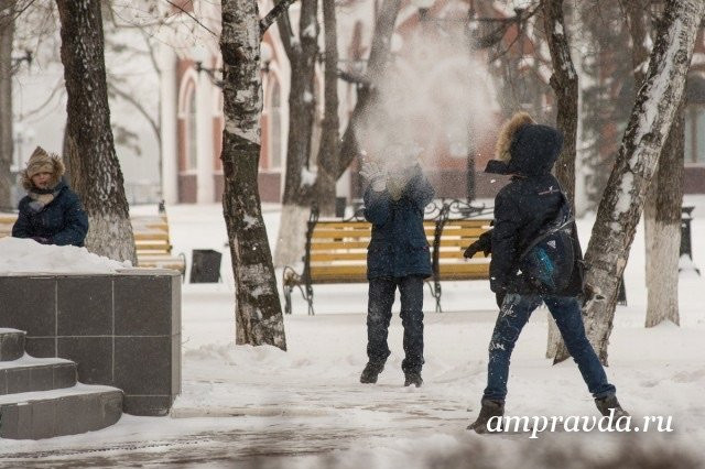 Согласно прогнозу амурского Гидрометцентра, в регионе ожидается переменная облачность и слабый снег повсеместно, кроме северных районов. Северный ветер с переходом на северо-западный местами будет дуть со скоростью 10—15 метров в секунду. По северу уличные термометры днем покажут 19 градусов мороза, по крайним районам до -24, ночью -30...-35 градусов. По югу днем -9...-14, ночью -30 и ниже градусов.