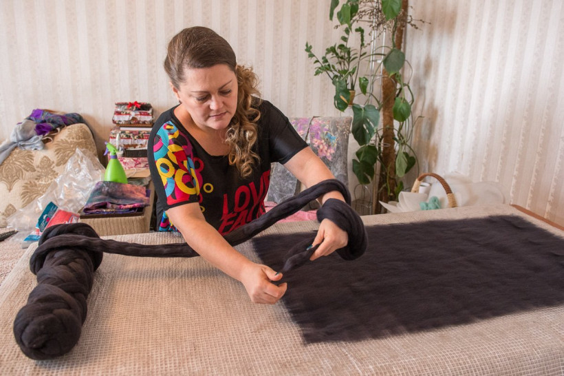 Эльвира Левицкая может свалять из войлока и пальто, и дамскую сумочкуОвечья шерсть, вода, руки. В умелых руках Эльвиры Левицкой из Благовещенска древнейшее искусство — валяние — получило новое дыхание. Амурская мастерица не стала валять дурака, а превратила свое хобби в заработок. Если большинство увлекающихся валяют игрушки да тапочки, то Эльвира — одежду. Сегодня ее авторский бренд знают не только в России, но и за границей. Как из обычного рулона шерстяных ниток или мешка овечьих кудряшек соткать модное платье, выясняли корреспонденты АП.