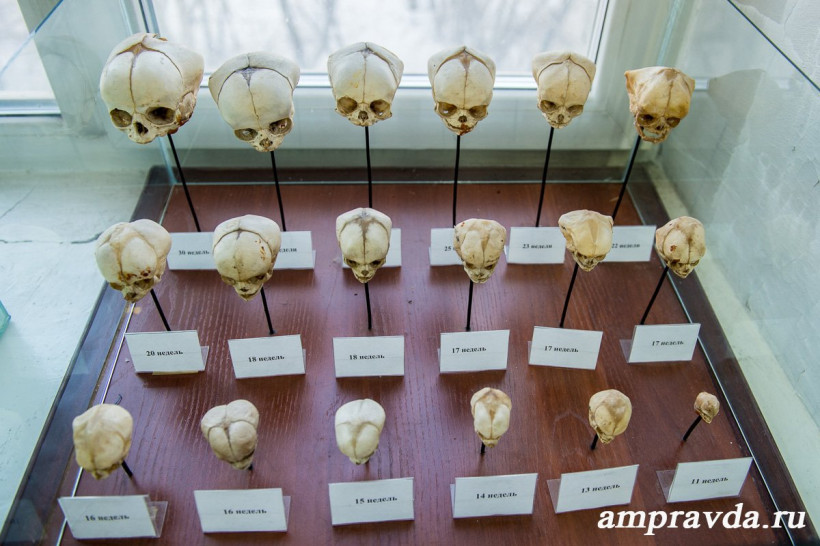 Анатомическому музею Амурской медакадемии в этом году исполнится 64 года — он существует со времен основания вуза. Сейчас коллекция препаратов пополняется медленнее. С одной стороны, из-за нюансов современного законодательства, с другой — перинатальная диагностика за полвека шагнула далеко вперед. Многие отклонения в развитии эмбриона сегодня видны уже на ранних сроках беременности, и женщине делают аборт.