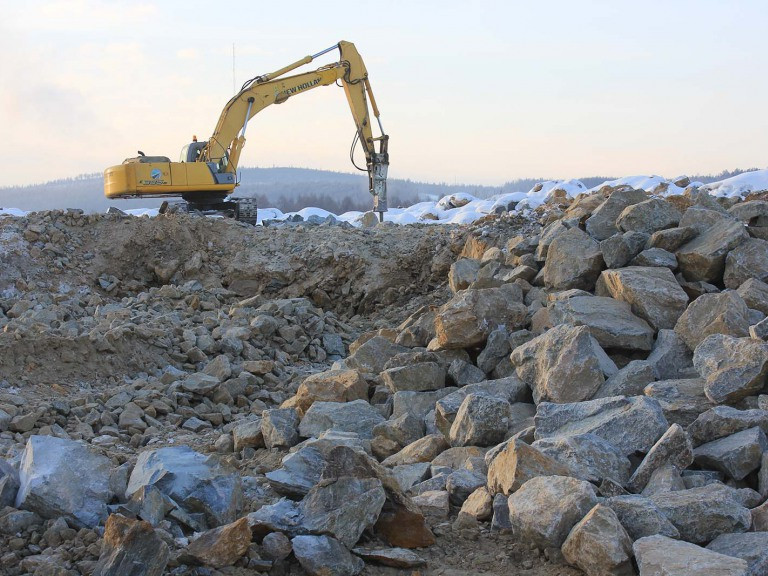 На Побожем идет сооружение канав и заготовка фракционного камня для охлаждающей бермы.