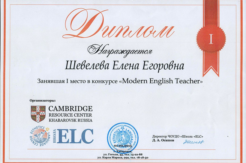 За час учителям предложили ответить на 100 вопросов на английском, связанных с методикой преподавания английского языка. Тестирование в конце прошлого года проводил представитель Хабаровского ресурсного центра на базе Амурского института развития образования. Итоги конкурса подвели накануне. Елена Егоровна набрала 79 баллов и победила в региональном этапе конкурса. Призерами также стали педагоги из Благовещенска, Зеи и Белогорска.