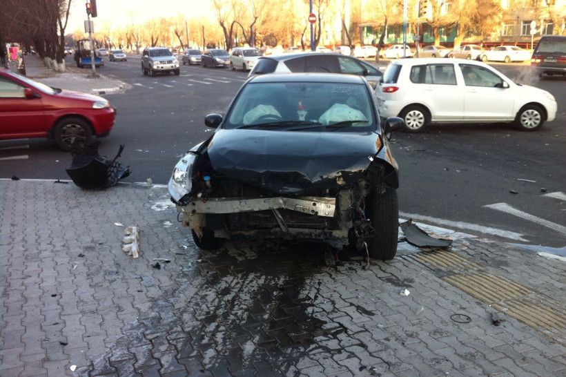 Nissan Tiida двигался по Горького в сторону улицы 50-летия Октября, ему навстречу ехал Crown. На перекрестке с Шимановского водитель Toyota Crown решил развернуться и поехать в обратном направлении, но не пропустил иномарку. От удара Nissan Tiida выбросило на тротуар. Передняя часть автомобиля сильно разрушена, сработали подушки безопасности, люди в машине не пострадали.