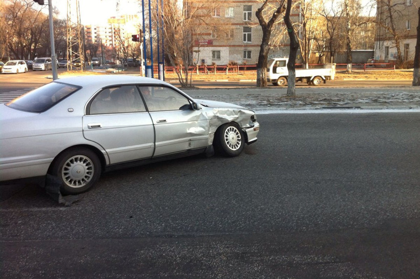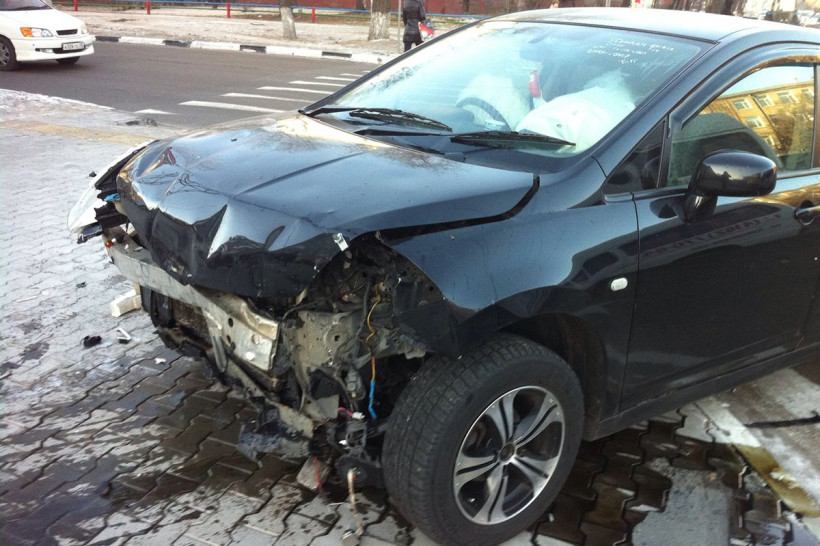 В Благовещенске после аварии Nissan Tiida лишилась передней части