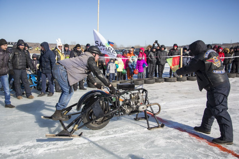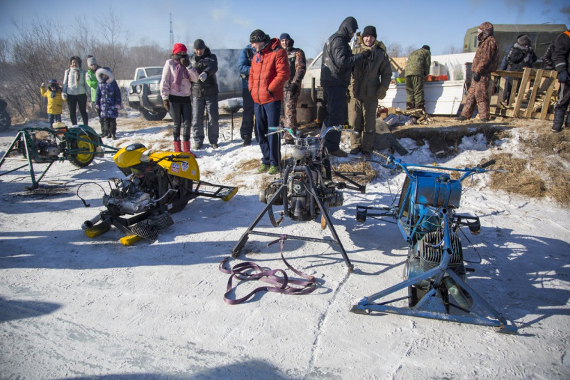 В Благовещенске прошел чемпионат по унимото: байкеры прокатились на самодельных мотосанях (24 фото)