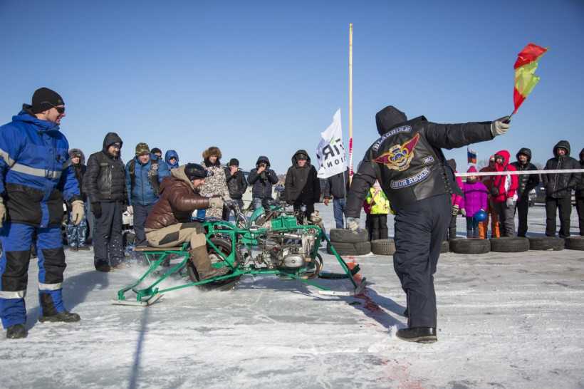 Амурские байкеры в юбилейный, пятый раз встретили «Синего крокодила» — так в регионе называется чемпионат по унимото — дисциплине, в которой наездники ездят на гибриде мотоцикла и санок. Еще одной отличительной особенностью этого вида развлекательного спорта является сама трасса — 30 метров ледовой дороги, которую нужно преодолеть не только быстро, но и не коснувшись льда передними полозьями.