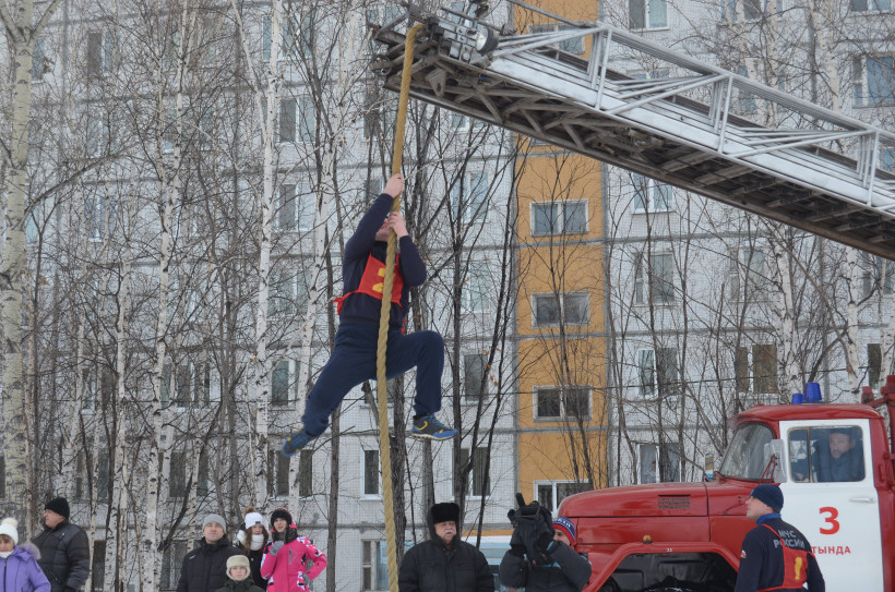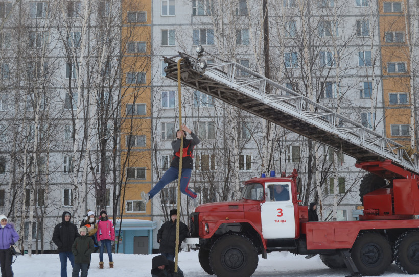 23 февраля мужчины Тынды стреляли из арбалета и взбирались по пожарному канату