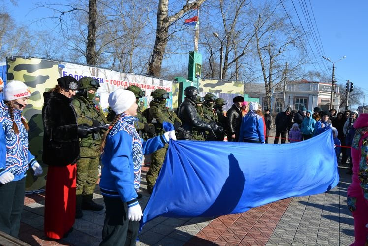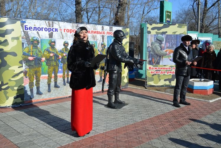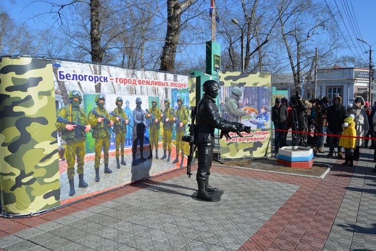 300 старшеклассников развернули 12-метровый российский триколорСегодня, 27 февраля, в Белогорске отметили первую годовщину Дня сил специальных операций. В народе новый праздник называют просто — Днем вежливых людей. У памятника вежливому солдату, который в городе установили прошлой весной, прошла молодежная акция. На нее собрались несколько сотен горожан. 300 старшеклассников под песню Олега Газманова «Вперед, Россия!» станцевали, вынесли 12-метровый российский триколор и запустили в небо 300 шаров с бумажными голубями. В память о событиях «крымской весны» одну из коллекционных 3D-копий памятника вежливым людям молодежь отправила посылкой в Крым. Ее адресовали главе Республики Крым и председателю крымского совета министров Сергею Аксенову. В 15.24 посылка покинула сортировочный центр Главпочтамта и будет доставлена в течение недели. Ей предстоит преодолеть более 8,5 тысячи километров пути. Высота копии единственного в России монумента в честь вежливого солдата — 15 сантиметров.