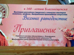 На пригласительных открытках к выставке амурских и японских мастеров живописи «Весеннее равноденствие», посвященной 160-летию Благовещенска, в качестве русской красавицы дизайнеры использовали изображение известной американской актрисы фильмов для взрослых Саши Грей. Пикантная подробность была обнаружена пользователями Сети.