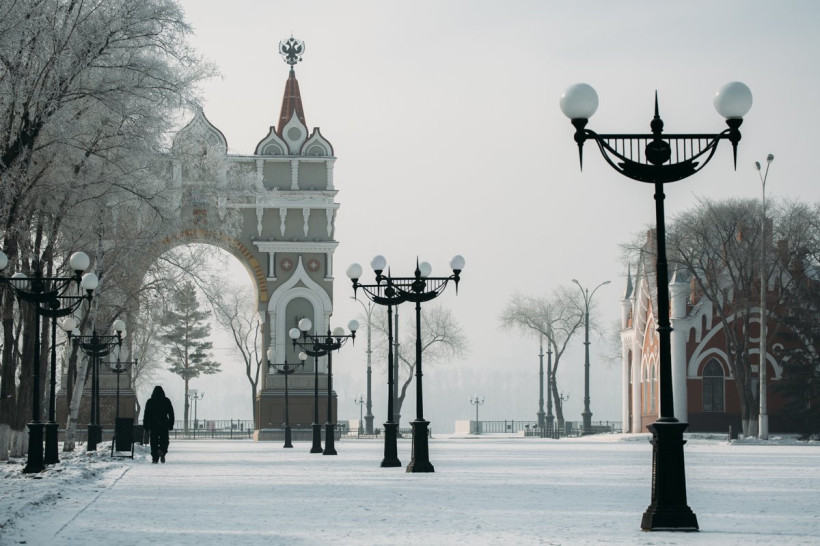 Амурский март: фоторепортаж с заснеженных улиц весеннего Благовещенска