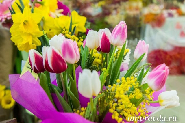 Многие цветочные магазины уже установили праздничный ценник на свой товар. Те, кто этого еще не сделал, уверяют: букеты подорожают несущественно. «Мы постарались не сильно завышать стоимость, потому что понимаем: сейчас кризис и люди не готовы тратить много денег. Если в прошлом году продавали большие розы за 250 рублей за штуку, то в этом году максимальная цена на 50 рублей ниже», — поделились с журналистом АП в одной из сетей цветочных магазинов. В праздники тюльпаны обойдутся в 45—80 рублей, нарциссы и гиацинты — в 100 рублей, а розы в зависимости от размера — в 40—200 рублей. В этом году, кроме уже традиционно популярных цветов, благовещенские салоны предлагают к празднику необычные и редкие цветы.