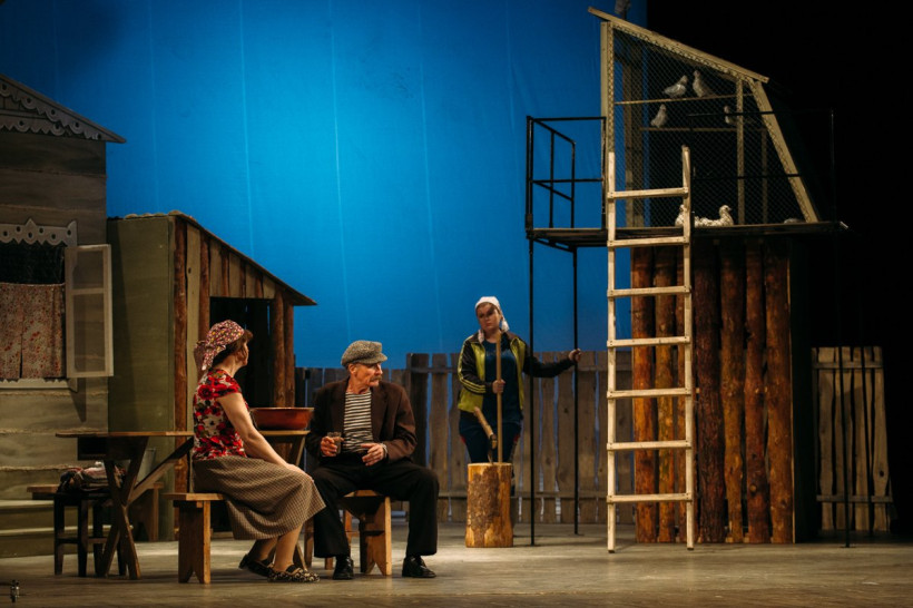Легендарная пьеса на сцене областного театра драмы стала лирической комедиейНепутевый Василий Кузякин, худенькая Надюха, комичный дед Митяй, горластая баба Саня… Амурские герои резко отличаются от персонажей легендарной киноленты «Любовь и голуби». Нетленным остаются лишь до боли знакомые фразы, разобранные народом на цитаты: «Людк, а Людк! Тьфу, деревня!», «Знай, с сегодняшнего дня я с тобой тоже в контрах», «Почему крашена? Это мой натуральный цвет». Все актуально и 30 лет спустя. В том числе и потраченные на парочку голубей 25 рублей, на которые можно было туфли купить, и «капиталисты проклятые», которые все на нас «рыпаются». Спектакль «Любовь и голуби» по пьесе Владимира Гуркина, поставленный в областном театре драмы, стал для амурчанок настоящим подарком к Международному женскому дню. Впрочем, слезу пробивало и у суровых мужчин. На премьере побывали корреспонденты АП.