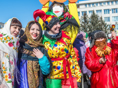 Больше трёх тысяч блинов съели сегодня на площади Ленина в Благовещенске. По традиции шумно и весело горожане встретили последний день Масленичной недели — широкую Масленицу. Пока одни с азартом поедали румяные блинчики, другие приняли участие в традиционных конкурсах. Самым зрелищными оказались попытки амурских богатырей покорить девятиметровый деревянный столб. Для того, чтобы добраться до желанного приза некоторые смельчаки, невзирая на мороз и ветер, брали препятствие в одном нижнем белье. Отведал традиционное блюдо и губернатор Амурской области Александр Козлов, а председатель Заксобрания Константин Дьяконов даже поделился домашним рецептом ажурных блинчиков. За народными гуляньями наблюдал фотокорреспондент «Амурской правды» Андрей Ильинский.