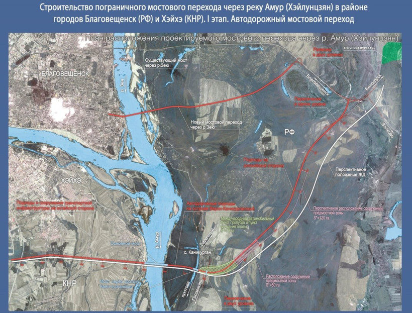 Идея строительства моста через Амур громко прозвучала в июле 1988 года. Облисполком Амурской области выдвинул в адрес города Хэйхэ и Правительства провинции Хэйлунцзян предложение о совместном возведении мостового перехода через пограничную реку. Стороны договорились об обращении к правительствам двух стран с просьбой об одобрении проекта и скорейшем его осуществлении. Переговоры, встречи и бумажная волокита растянулись на десятилетия. В 2005 году, не дождавшись добра от России, наши трудолюбивые соседи даже построили подъездные пути к мосту около деревни Чанфатунь района Айхуэй. Как писала тогда же АП, власти области и финансово-строительная компания «Мост» провели инженерно-строительные изыскания, разработали и скорректировали проекты мостового перехода и автострады, подвели ЛЭП, смонтировали подстанцию. Затраты на многолетние подготовительные маневры на нашей стороне составили не менее 15 миллионов рублей.