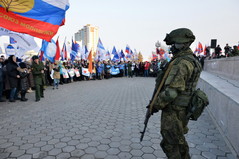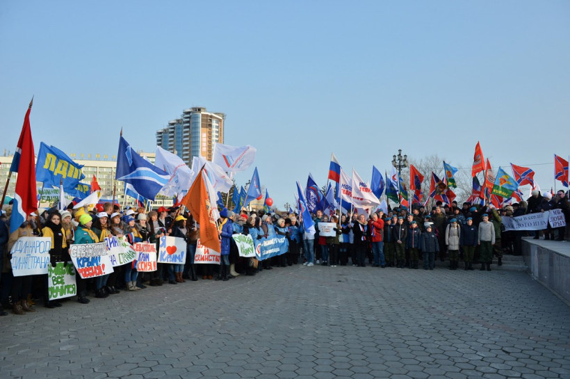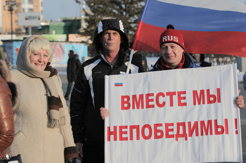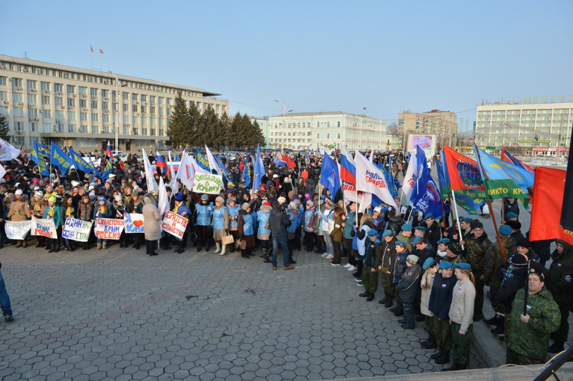 Митинг в честь второй годовщины воссоединения Крыма с Россией прошел в Благовещенске. Фоторепортаж