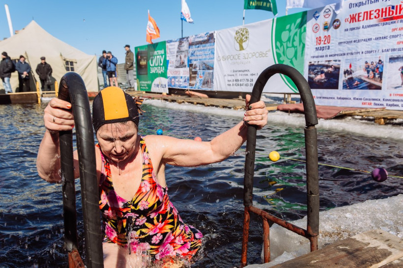 В уникальном двоеборье участвует около ста спортсменовОколо 100 спортсменов принимают участие в открытом турнире Благовещенска по зимнему двоеборью «Железный человек». Уникальные соревнования, аналогов которым нет нигде в мире, продолжатся сегодня и завтра на Амурской,1. Традиционно это заплыв в холодной воде реки Зея, а затем бег на сто метров по снегу. В этом году в турнире участвуют спортсмены из Хабаровска, Комсомольска-на-Амуре, Владивостока, Благовещенска и других городов и районов Амурской области. Также на мероприятии присутствуют гости из КНР. За железными людьми наблюдал Сергей Лазовский, видео можно посмотреть на нашем канале здесь.