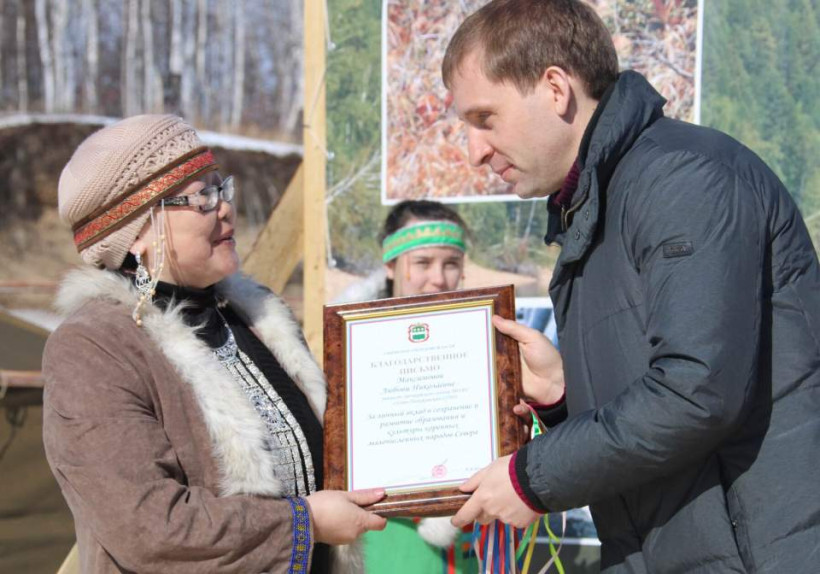 После осмотра культурно-социальных объектов высокий гость поспешил на главный профессиональный праздник года — День оленевода и охотника. Однако делегации преградили путь олени, управляемые маленькими наездниками, и председатели родовых общин села. Попасть на торжество можно только после прохождения обряда очищения. Под звуки бубна губернатор прошел сквозь горящие дымокуры, повязал ленточку желаний на шаманское дерево и отправился к сцене.